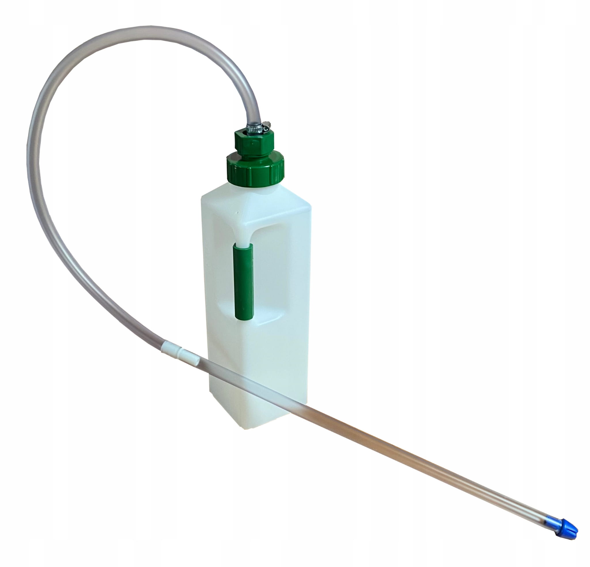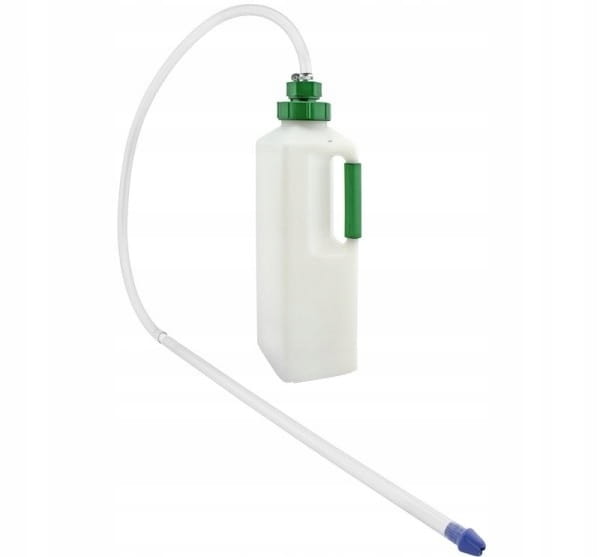 Profesjonalny aparat do podawania płynów z elastyczną sondą to niezastąpione narzędzie do karmienia i nawadniania cieląt, zwłaszcza tych osłabionych, chorych lub mających trudności z pobieraniem pokarmu. Zestaw składa się z wygodnej, trwałej butelki o pojemności 3 litrów oraz specjalnej sondy o łącznej długości 130 cm, umożliwiającej bezpieczne i precyzyjne podawanie płynów. Ergonomiczna konstrukcja i solidne materiały zapewniają łatwą obsługę i długą żywotność produktu.