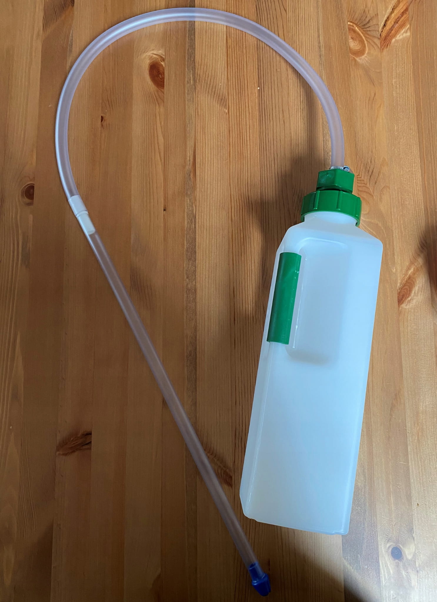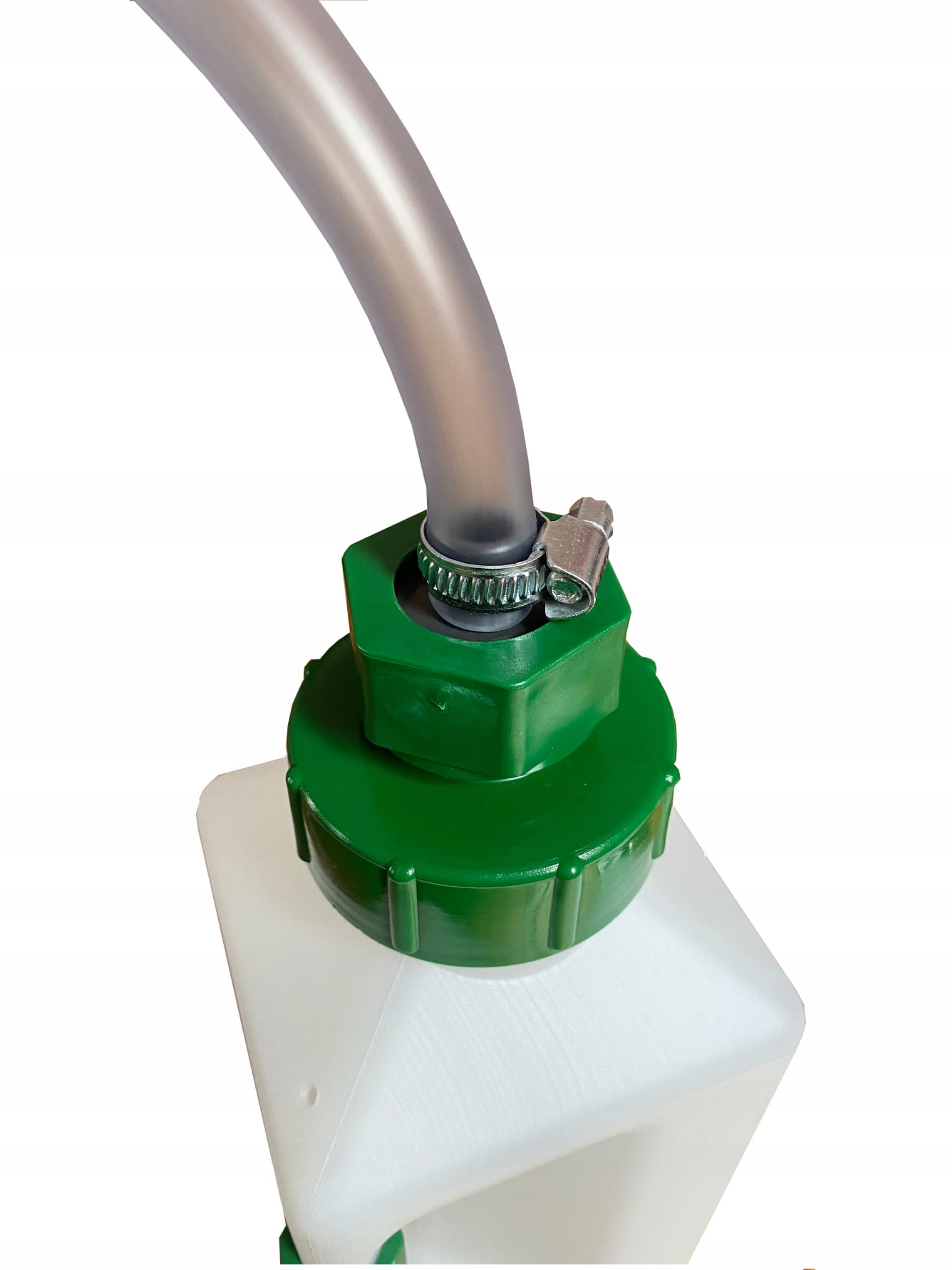 - Przymocuj napełnioną butelkę do węża.