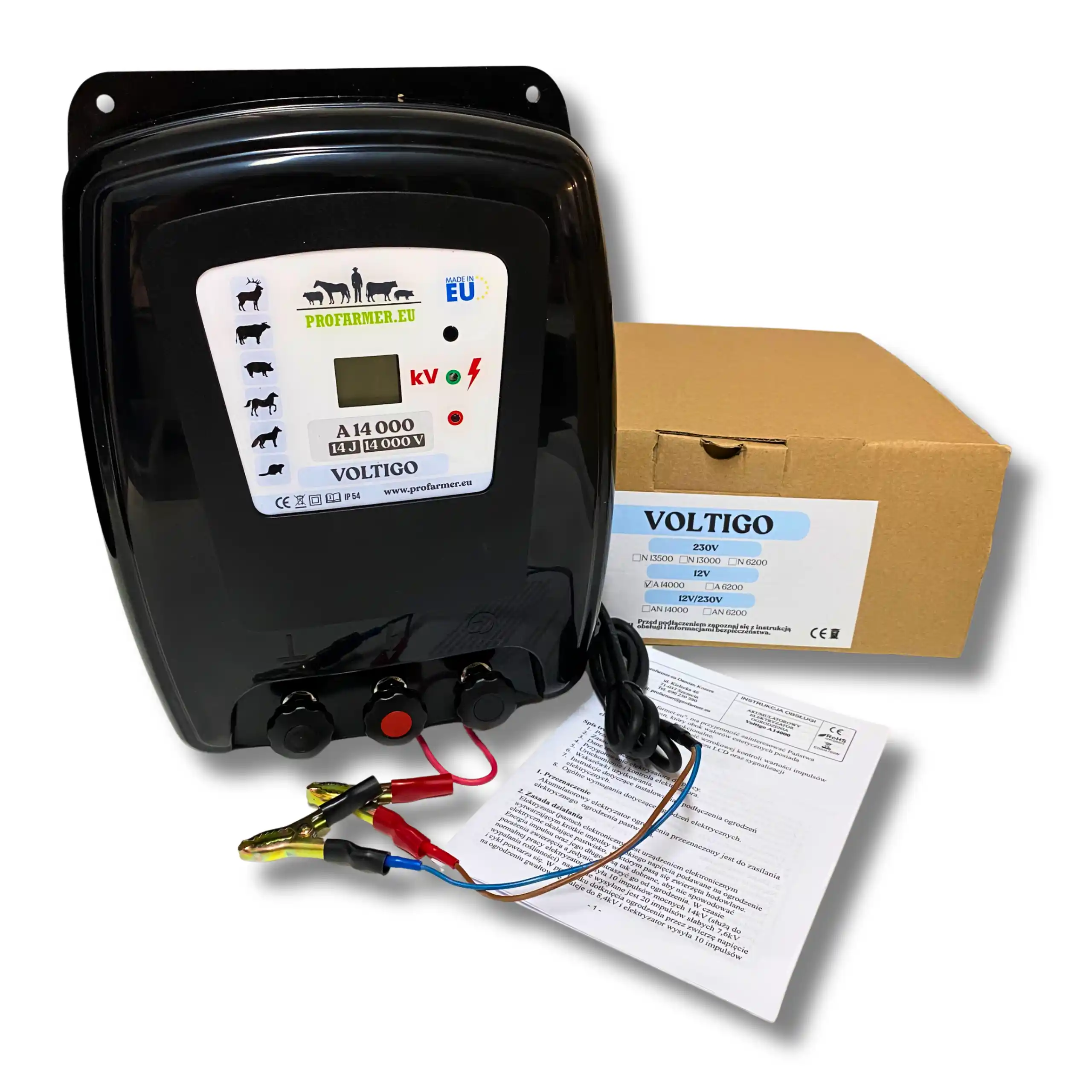 Elektryzator VOLTIGO A 14000 to najmocniejszy model akumulatorowy w naszej ofercie, stworzony z myślą o pracy w miejscach bez dostępu do zasilania sieciowego. Dzięki bardzo wysokiej mocy świetnie sprawdza się przy rozległych ogrodzeniach oraz na terenach o utrudnionej przewodności, takich jak suche pastwiska czy obszary z dużą ilością roślinności.