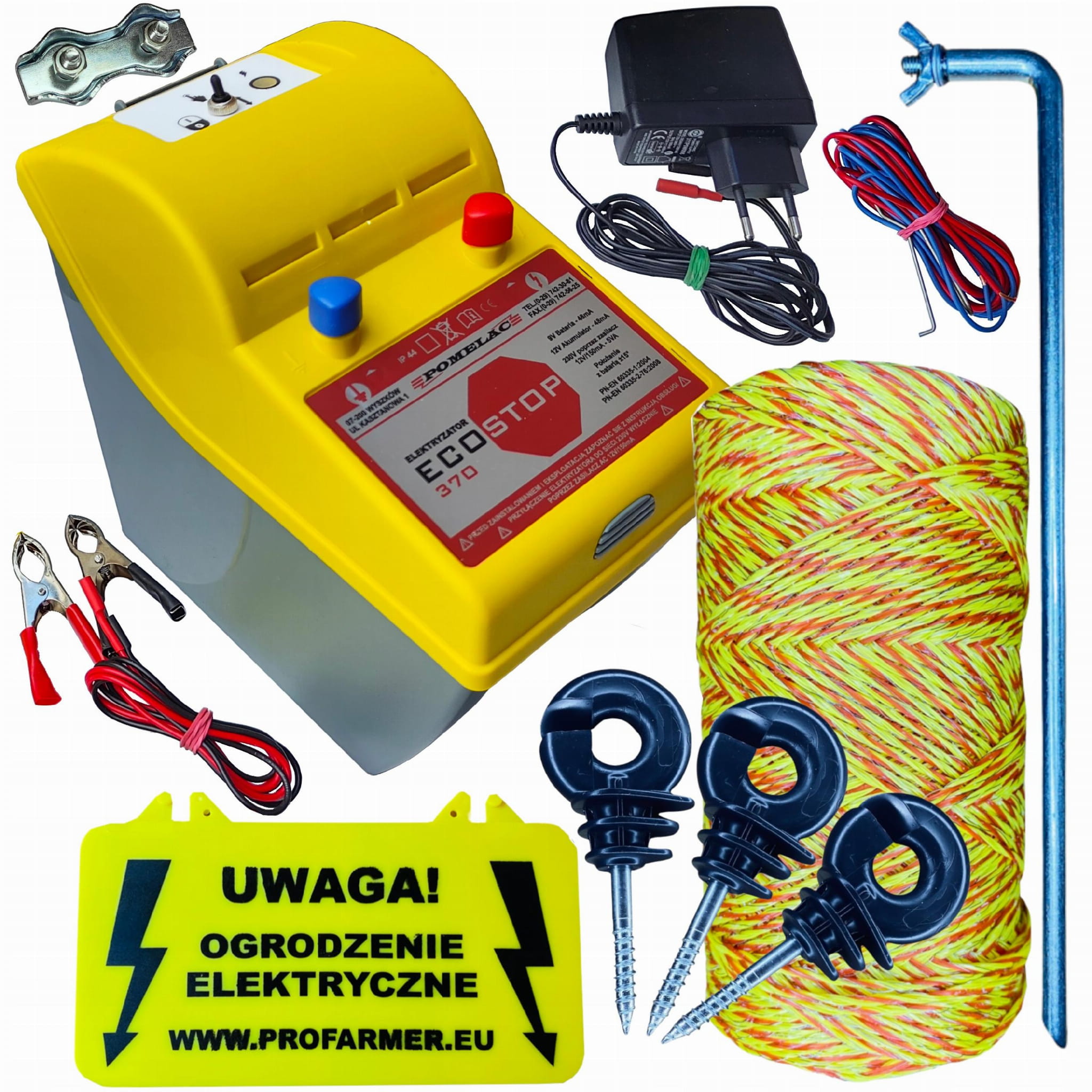1️⃣ ELEKTRYZATOR UNIWERSALNY ECO STOP 370 z pojemnikiem na baterie/akumulator wraz z instrukcją obsługi