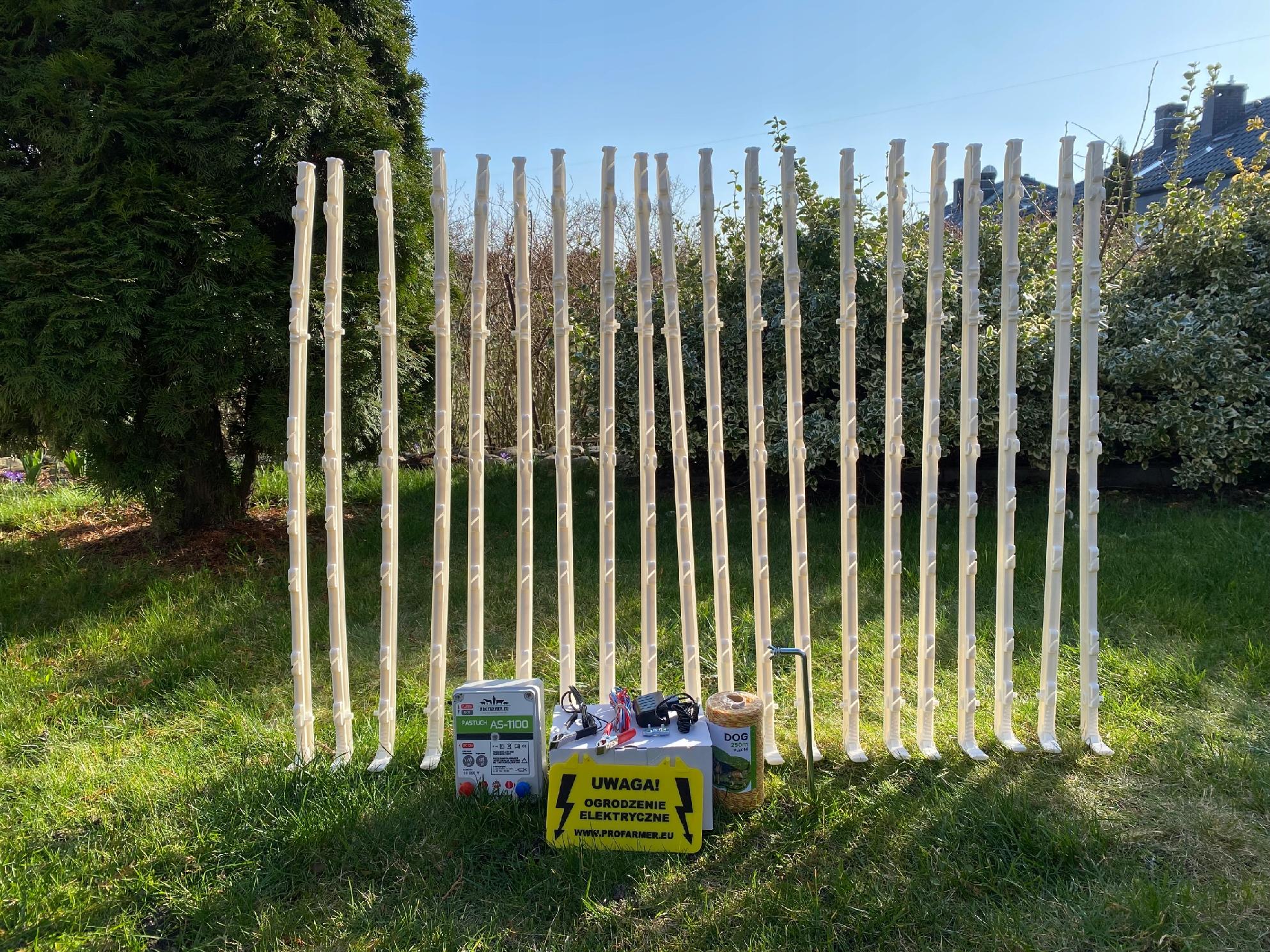 Przedstawiamy KOMPLETNE OGRODZENIE ELEKTRYCZNE, które doskonale sprawdzi się w przypadku, gdy chcecie Państwo ZABEZPIECZYĆ SWÓJ TEREN, OGRÓDEK przed PSAMI albo WYGRODZIĆ PASTWISKO dla swoich zwierząt hodowlanych takich jak KONIE, KROWY, BYDŁO MLECZNE, TRZODA CHLEWNA, DRÓB.