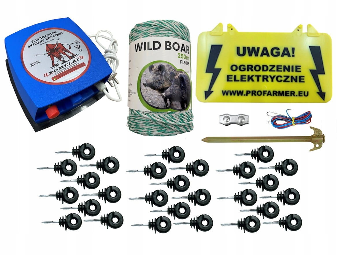 Kompletny zestaw pastuch elektryczny na dziki, wydry, bydło bydło mięsne– nr 20