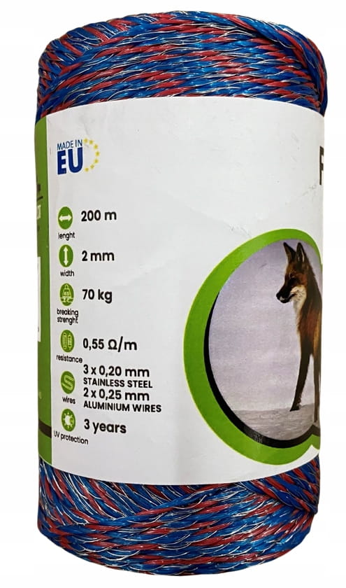 Wybierając nasz produkt otrzymujecie Państwo profesjonalną plecionkę, którą dzięki niskiej oporności (0,55 Ohm/m) można podłączyć nawet do bardzo silnych elektryzatorów.